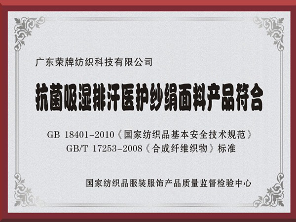 世界杯官网抗菌吸湿排汗医护纱绢面料产品符合国家标准